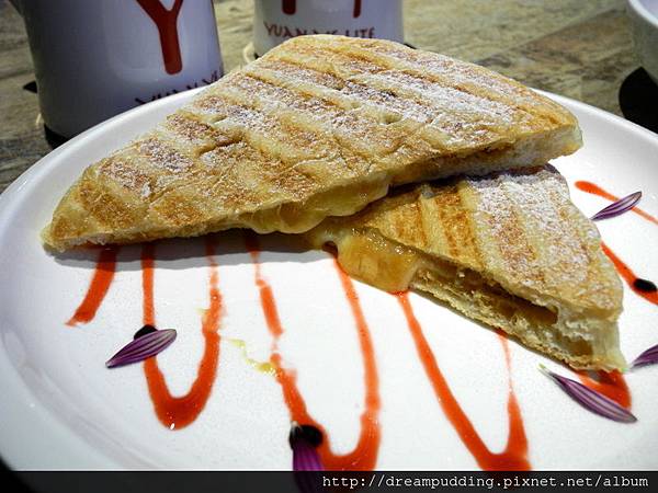 這個好吃,花生醬濃郁卻不會過甜或是厚重,跟起士很搭,帕尼尼帶點空氣感跟嚼勁,我們都喜歡。