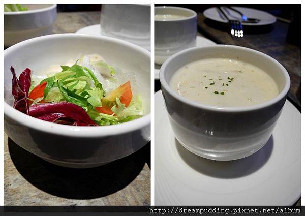 附餐的沙拉跟濃湯,沙拉是簡單的生菜。