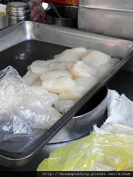這個肉粿下鍋前看起來好像白嫩嫩的干貝