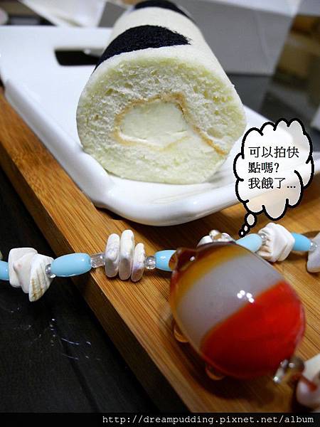 竹炭粉的口感很細微,帶著隱約的細微沙口感讓戚風嘗起來更有風味,內餡奶油很滑順,吃起來不會太甜,很順口,這個我喜歡。