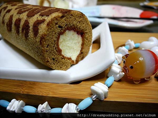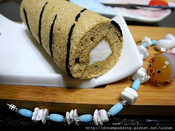 這個花豹捲裡面有焦糖醬、草莓醬、咖啡精跟可可粉;整體口感很豐富,多了可可粉讓咖啡味道部會太濃,還有淡淡的草莓香甜提味,柔順的奶油內餡在中間潤澤,嚐起來比較多層次,有點像咖啡可可,這個口味我也很喜歡。
