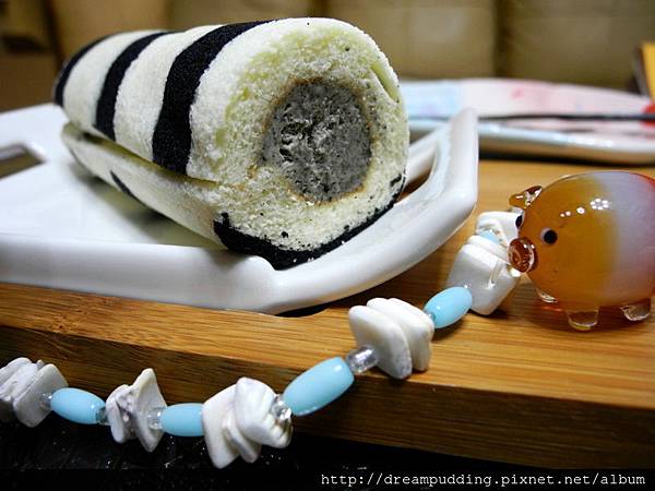 斑馬【鮮奶+芝麻】,斑馬的內餡採用卡士達醬跟芝麻醬,芝麻的細沙感蠻明顯,吃起來很香,口感比較濃,也是我很喜歡的其中一款。