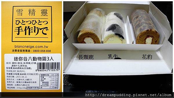這動物捲有個可愛的名字,迷你谷八動物園,動物園有兩版,這一盒是Mini 1,是長頸鹿【藍莓+咖啡】+乳牛【濃醇鮮奶】+ 花豹【咖啡+草莓】。