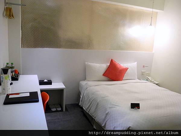 房間不大,可是配備一應俱全,除了有一張大床之外還有長形桌可以放物品或是充當書桌坐著寫字,不過就沒有衣櫃了,但有可以掛衣服的架子。