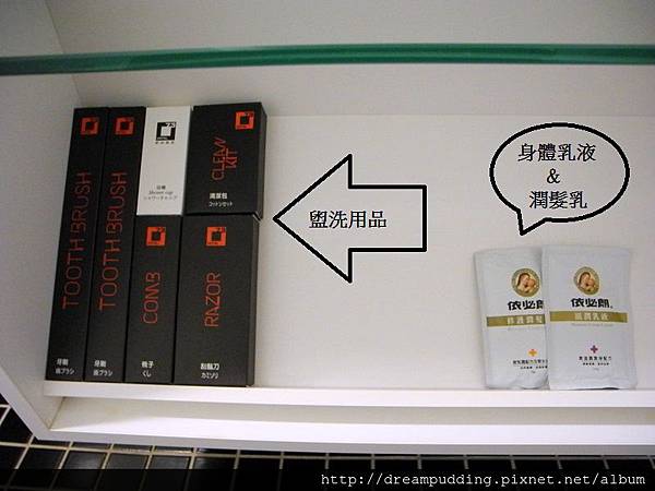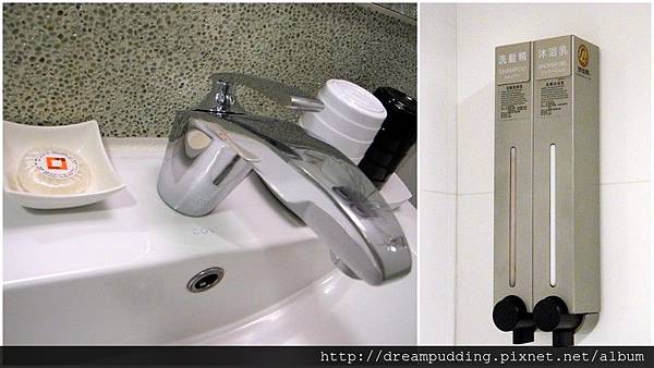 洗手台旁邊也有附洗手皂,洗髮精跟沐浴乳則是補充式的,是依必朗,洗髮精洗完頭髮會比較澀,一定要用潤髮乳。