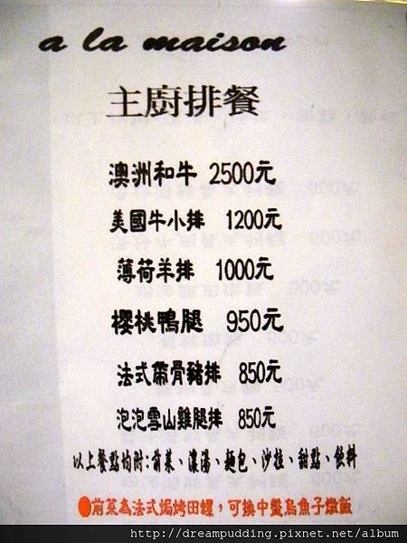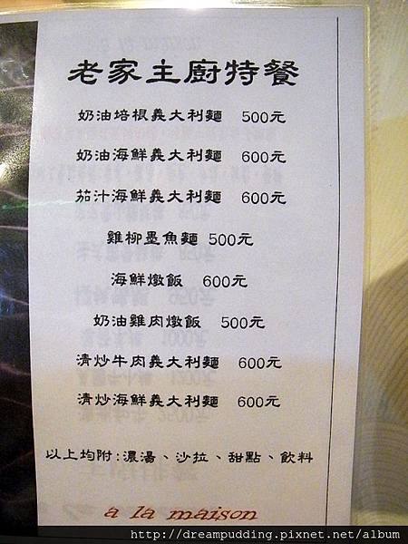 義大利麵跟燉飯屬特餐,排餐則是肉類;排餐會比特餐多了前菜跟麵包,上面的價格是套餐價,不收服務費。