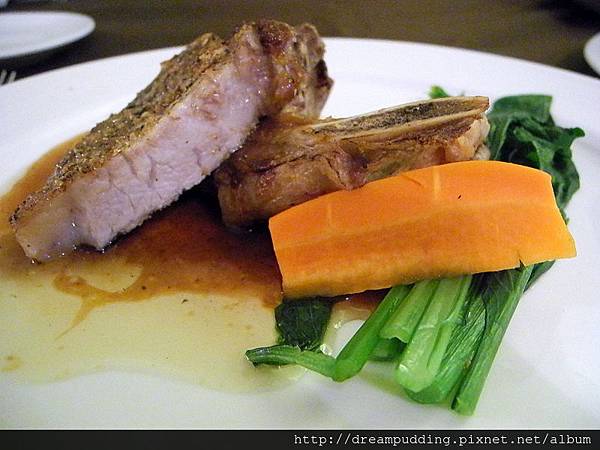 這一道雞腿肉有嫩且有汁,口感很豐富,一旁附的配菜像是青菜或是胡蘿蔔也都甜美多汁。