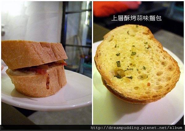 排餐附的麵包,有兩種口味喔!嚐起來蒜味濃厚但不會太重,也不油膩,不用擔心口氣的問題。