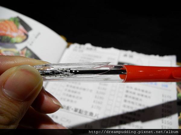點好餐之後再去櫃台結帳,拿筆要畫單點餐時突然一陣小刺痛,才發現筆是壞的,可能服務人員沒注意,所以才會繼續放在桌上給客人寫,是開沒多久的新店,怎麼筆已經被損壞了>////<,想必一定是生意很好