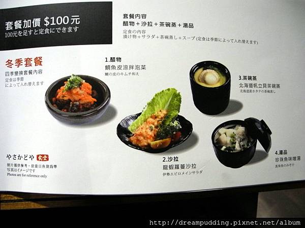 丼飯單點有附味增湯,可是如果加100元,就能升級成有醋物、沙拉、茶碗蒸跟味增湯的超值套餐,這樣當然要升級套餐才划算啊!而且沙拉還是我好喜歡的龍蝦蘿蔓沙拉
