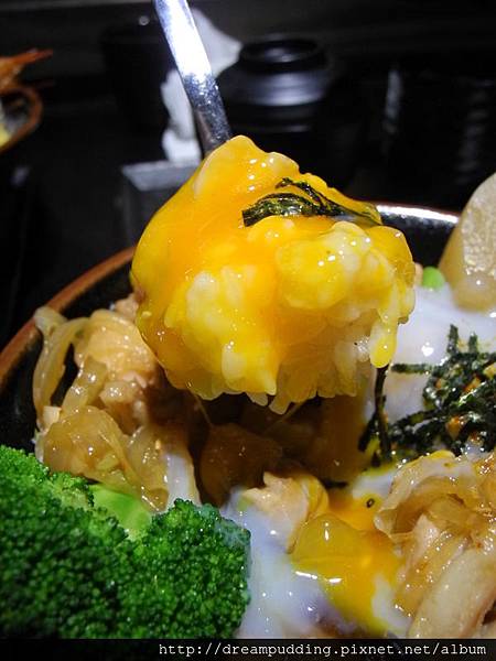 可能因為蛋太大顆,又比較生一點,雖然將白飯一起都拌了,但友人還是覺得略生,所以沒吃完,不然雞肉有嫩,壽喜燒的醬汁味道也不錯,有點可惜了。