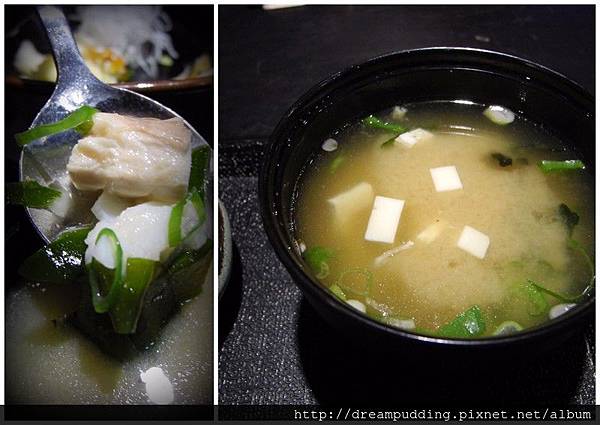 味增湯還蠻好喝的,料也蠻多的,口感不會太鹹,帶點鹹甜微微的濃郁,是好喝的味增湯。
