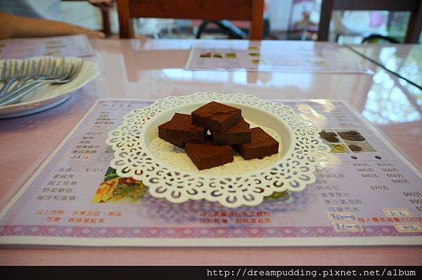 謝謝老闆娘特別訂製的私房甜點生巧克力,入口讓他慢慢融化的口感很香醇濃厚。