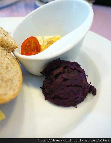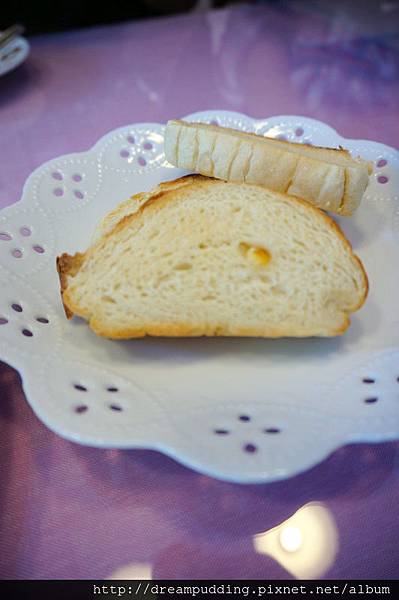 這個是附餐的上面三種餐點的附餐麵包,這個我有吃到(灑花),還是我好喜歡的香橙口味,口感清新自然帶著果香,下次要來去問老闆娘這個有沒有外賣整條的。