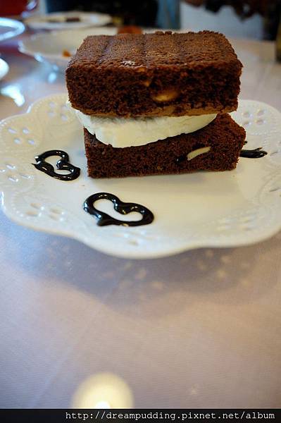 甜點布朗尼,80元,布朗尼加熱後跟鮮奶油一塊在嘴裡相融的感覺很棒喔!
