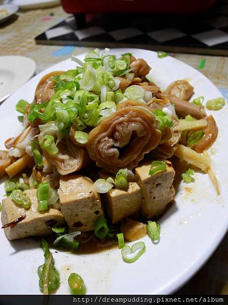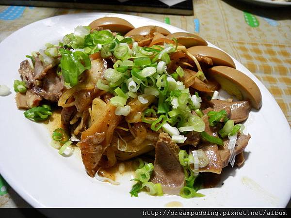 滷味,這盤滷味有豬舌頭、豬頭皮跟滷蛋還有豆干,口感都很入味,豬頭皮肥的部位也不會太過肥膩,豬舌也Q中帶嚼勁,蔥花也都新鮮。