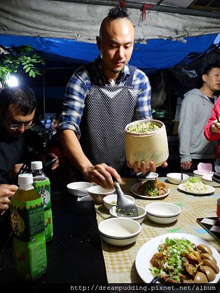 士官長酸菜白肉鍋分兩個時段用餐,分別為晚上6點跟晚上7點30分,我們訂到6點的時間,6點一到,整個路邊就滿滿的人,所以我就不好意思多拍其他地方,只敢拍我們自己這一區,我們人比較多,所以被安排到最裡面的大桌,雖然看似簡易的棚子,可是這天輕微的下著小雨,伴著那小雨滴答聲,也感覺在這小棚子裡遮風避雨感到很溫馨。