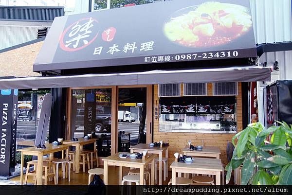 桀日本料理位於公益路二段跟永春東七路的交叉路口這邊,披薩工廠的旁邊,店門口比較小,所以不仔細看很容易就錯過。是說我出發前有先查了地圖,可是地圖上標示是從公益路往中彰快速道路方向騎過去並沒有過永春東七路,可是實際上,是要過永春東七路的,就在我以為騎過頭,在交叉路口準備迴轉時,讓我發現了索爾哥就坐在一間店門口,所以才沒有又往回騎。