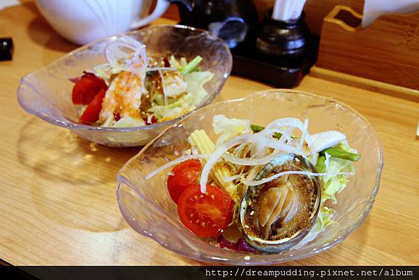 有小鮑魚的和風沙拉是780元套餐的,580元套餐附的是蝦子,和風口感清爽開胃。
