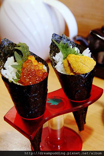 手卷分別是魚卵跟海膽,裡面都夾了片增添清新口感的紫蘇葉,海膽吃起來的感覺真的很美好(淚)