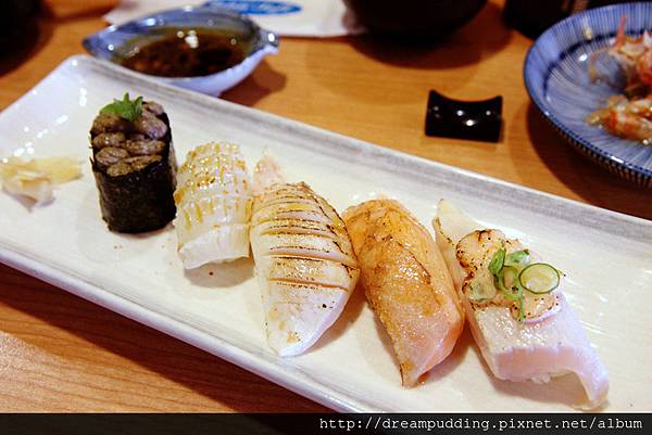 780元套餐的炙壽司都是我愛的,干貝、比目魚、安格斯牛肉,比目魚入口即化的美好感令人著迷,安格斯牛肉則是給了兩大片,醋飯口感不會太過濕潤也不會太黏,整體吃起來很棒。