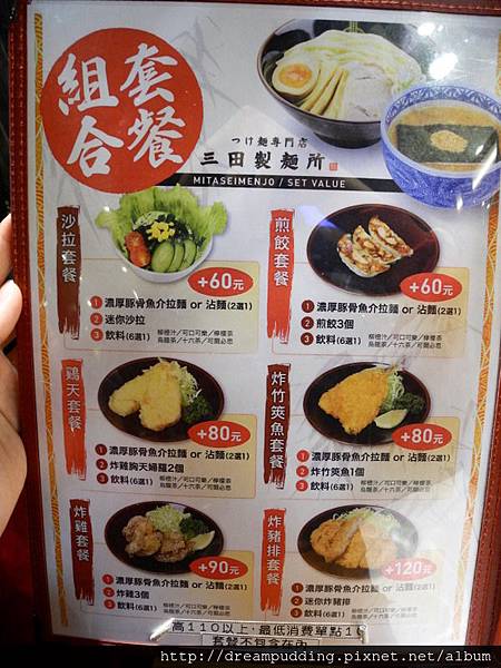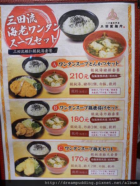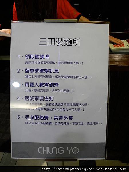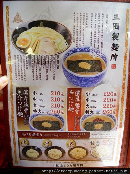三田製麵所本就在我填不滿的口袋名單裡,這天跟同事在中友逛了一個下午,逛到肚子都餓了,可能是因為下雨的關係,雖然是假日,但三田製麵所卻沒人在排隊,當然不能放過這個大好機會啊,立馬奔~~~