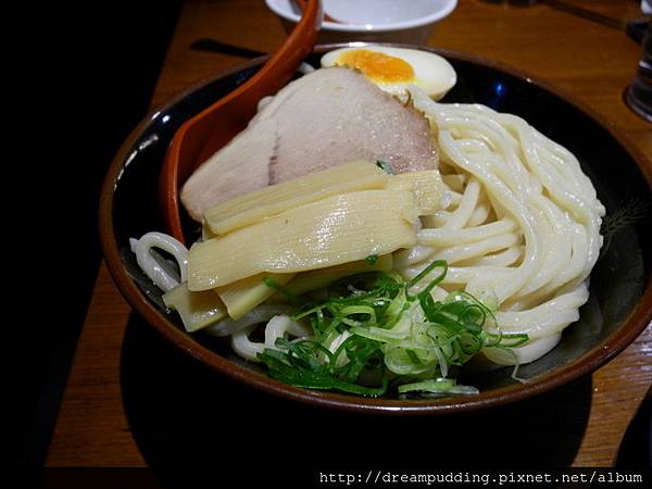 吃過幾間沾麵,可能是要吸附醬汁的關係,沾麵的麵條都是粗的,還有附上叉燒、蔥花、半熟蛋跟筍乾。