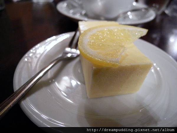 檸檬起士蛋糕,小小的一塊很像固體奶油,口感緊實稠滑有著微酸。