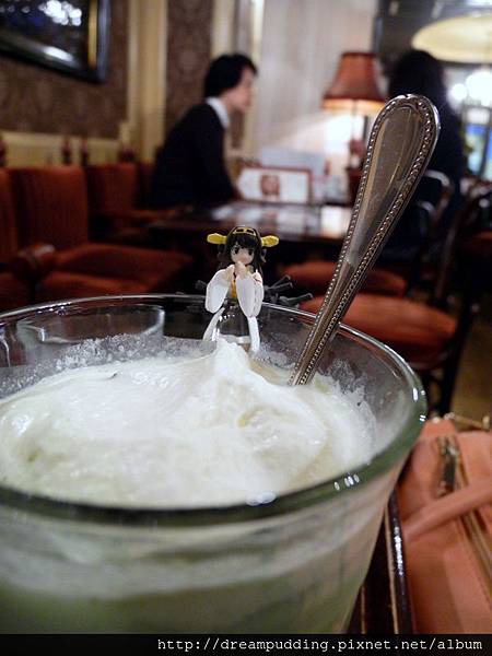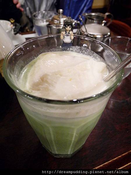 抹茶味道濃厚卻不會太過,帶點微苦,恰到臨界點邊緣的苦,那微苦更襯托出了抹茶的優雅茶香,讓人激賞的是那上面一抹白,那丸鮮奶油濃厚綿密又輕盈,超好吃的!太過嗜甜的我對抹茶本身不會很喜愛,但說真的,她是好喝的抹茶;可是對她上面漂浮的那抹雪白,我倒是愛不適口。