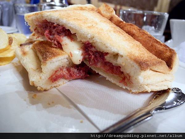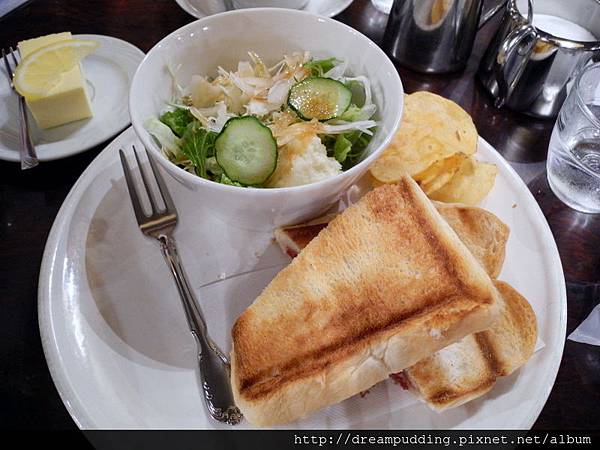 烤三明治,還有附沙拉跟洋芋片。
