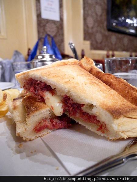 麵包烤的外皮酥帶點細微的脆,口感樸實很有手感,牛肉是細絲狀,肉味不會過重,整體吃起來口感豐富,有飽足感。