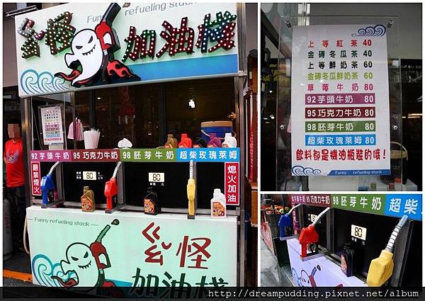 這個飲料加油站很新奇,飲料是裝在機油瓶裡,本來想買的,可是價位在夜市裡算是比較高的,所以只好放棄了>/////<
