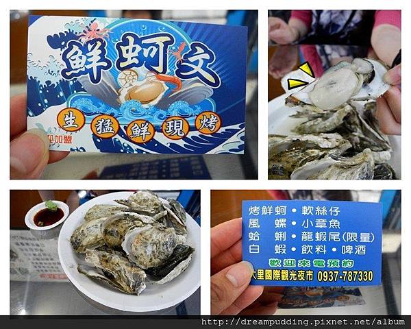 除了林立的攤位之外,也有可以坐下來歇息的攤位,我跟小花跑來吃鮮蚵文,一盤100元,我們點了一盤烤鮮蚵,有11顆鮮蚵喔!有新鮮。