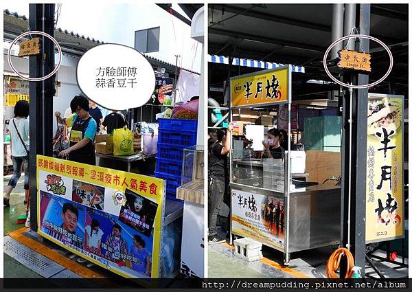 還有很多小吃攤位,我最愛的旱溪夜市的方臉師傅蒜香豆干也有在這裡擺攤,跟一中街很熱門的半月燒都在倫敦街口喔!