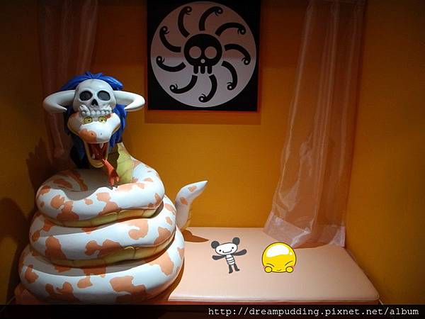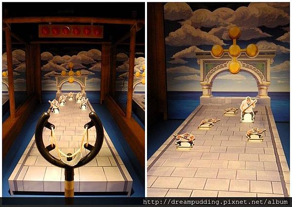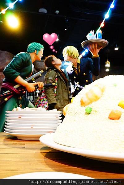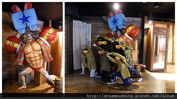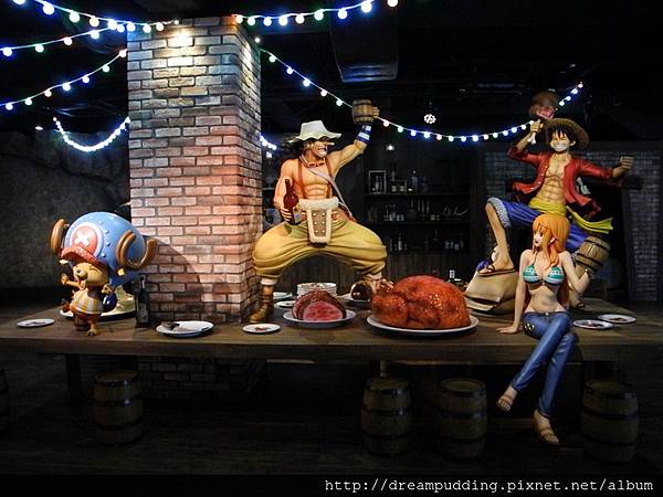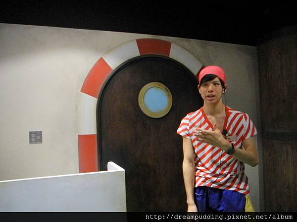 這個最上層樓(沒記錯應該是4樓)會有航海王真人劇場演出,有時段限制,要先去預約取票,這樣時間到了才能進場,裡面不能拍照,可是官網裡的圖片有幾張演出特寫,演羅賓的那個超正,身材超好皮膚又白臉但也很精緻,腰極細的,不只浪哥眼睛一直跟著他,連喜歡香吉士的我也幾乎全場盯著他不放。
