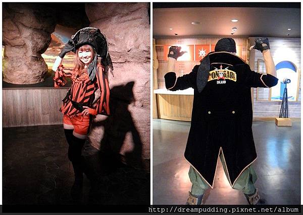 不過穿黑色海賊服的那位大哥還蠻帥的,可他一直要我們拍他背後,哈哈