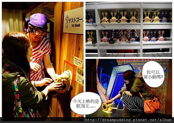 熱愛航海王的你有來日本玩千萬不要錯過,尤其是那個模擬真人劇場演出,雖然我完全聽不懂半句,可是就是看得熱血沸騰,很開心啊,從一進去就是很歡樂的氣氛,而且主題商店裡面賣的商品也都還在能接受的範圍內,公仔都蠻便宜的,這次東京行,真的很開心、很開心、很開心。