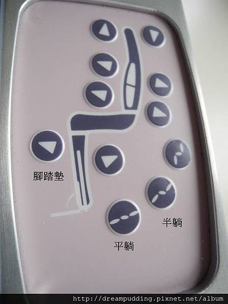 椅墊還能按一旁的遙控來選擇你想要的姿勢喔,還能完全平躺,而腳踏墊也是電動操縱的喔,有腳踏墊讓雙腳會舒服許多。