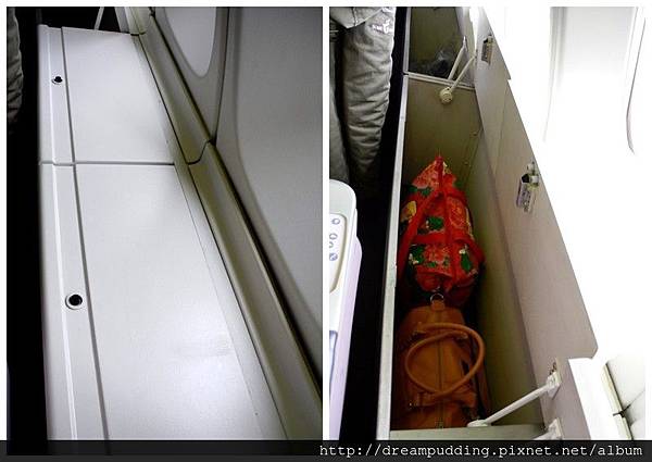 而且座位旁就有能放隨身行李的櫃子,打開就能放了,不用再踮起腳尖放到座位上方囉。