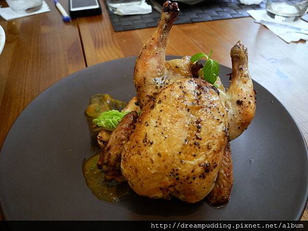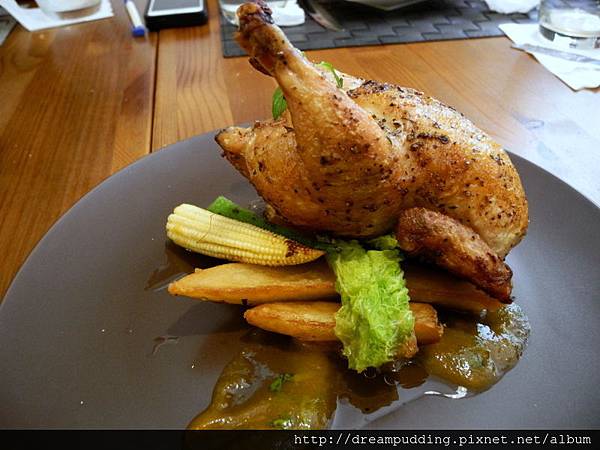 我被香妍的老闆娘誤導了,以為春雞很大一隻,原來是因為香妍的春雞裡面有塞了料;其實春雞就小小的一隻;小餐桌的春雞味道很不錯,帶有肉汁且不乾澀。