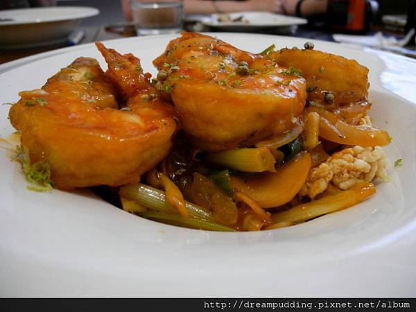 大蝦下面還有脆脆的米香,還蠻入味的,但可能是因為採乾燒的方式,蝦肉入味新鮮,但沒有脆口的彈跳感。