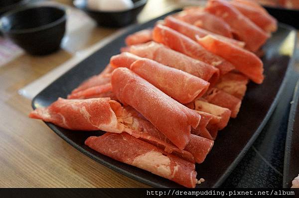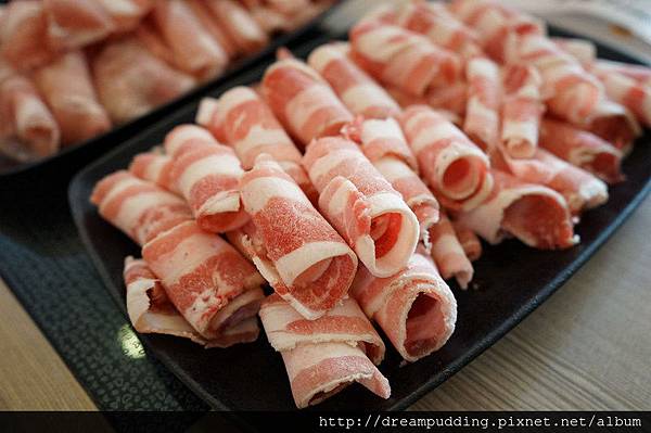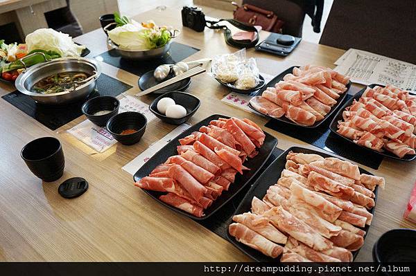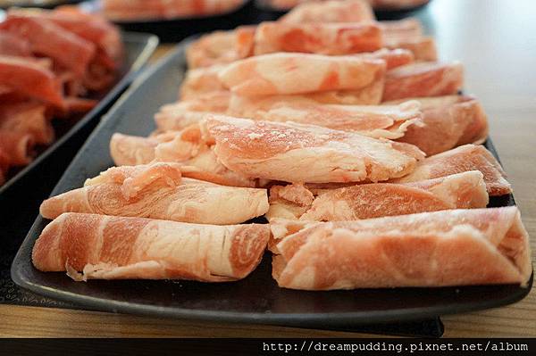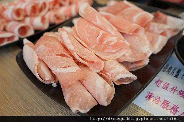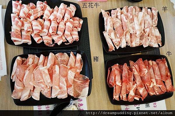 肉足足有5大盤,圖片上是五花牛跟牛豬羊,雞肉我拍在後面的幾張,每一大盤大約都是20幾片的肉片,一上桌我跟索爾哥都嚇住,這吃到飽的第一輪我們就沒再加點過肉了,因為第一輪就超飽。