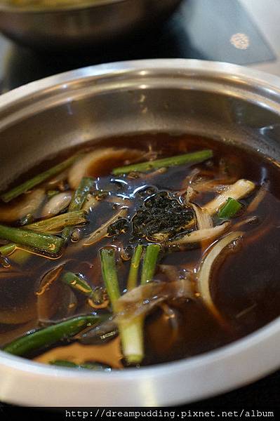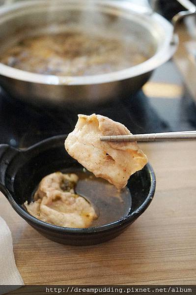 而我的日式涮涮鍋湯頭也是店家使用柴魚跟昆布自己熬煮,一開始喝其實蠻清甜的,但到後面因為我涮了太多太多的肉片了,所以到後面會有一層油花