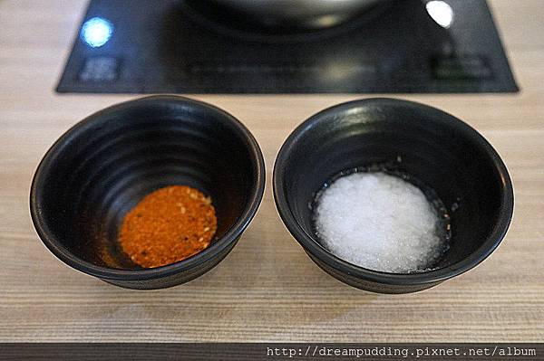 壽喜燒附的調味,七味粉跟蘿蔔泥。