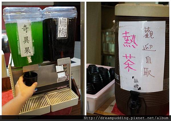 現場飲料會有兩種無限暢飲,也有可解膩的無糖的熱茶。也有一些可另外單點的氣泡飲料像是可樂、雪碧還有金牌。