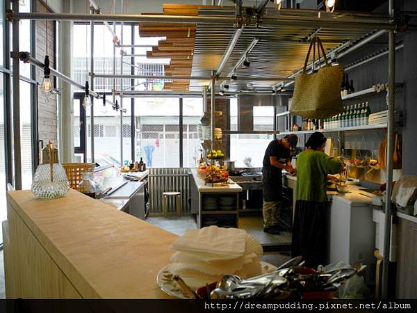 地坊餐廳是開放式廚房,能夠親眼看廚師做菜真的是一種享受,而且在烹煮過程中那微微瀰漫在空中的食物的香味,不斷刺激著味蕾及唾液分泌,真的是一種痛苦又甜蜜的折磨。開放式廚房雖然會讓室內有點小油煙味的感覺,可是離開之後,發現身上沾染的油煙味其實並不會很明顯。