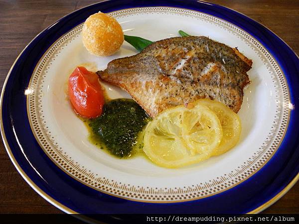 我不大敢吃熟魚的人,所以只有吃了幾口,但這個魚口感細緻帶點魚汁,表皮微酥,挺好吃的,一旁的青醬濃郁但不鹹膩,嚐到那青醬我突然好想來盤青醬義大利麵