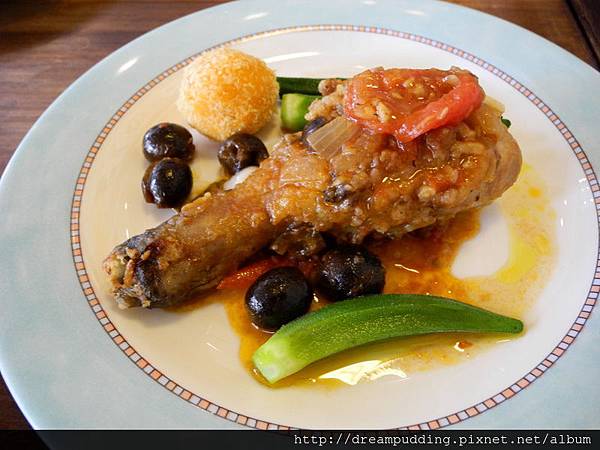 普羅旺斯橄欖煎酒粕雞腿,我們點了兩份雞腿,所以主廚給了我們一個雞腿跟一個雞胸,部位不同口感也不同,我個人比較喜歡雞腿肉,肉質Q嫩帶點彈性,有著細微的嚼勁,好吃!