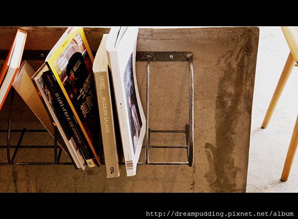 水泥桌旁還訂了鐵架放置書籍,真的是空間利用的很有巧思。