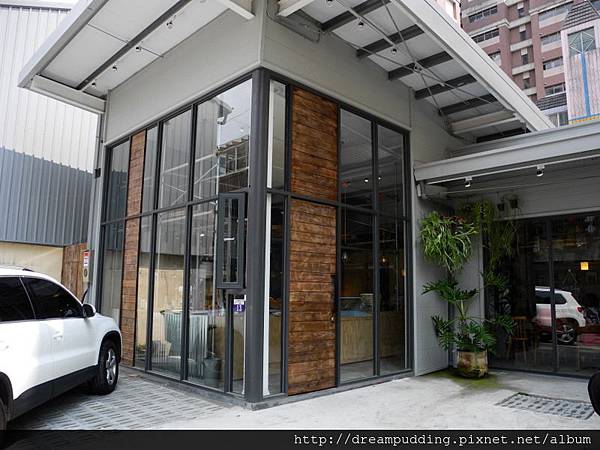 這棟有著大片透明玻璃的就是地坊,只要經過都會讓人多看幾眼,店門口能停2~3輛車,對於開車的顧客真是一大貼心,因為這巷弄真的不好停車阿。